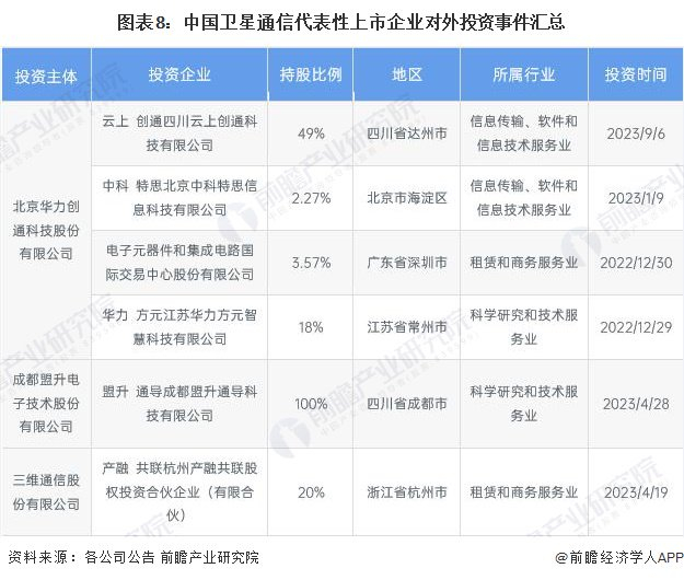 从卫星通信代表性企业最新对外投资赛道情况可以看出,卫星通信代表性企业主要投资赛道为信息传输、软件和信息技术服务业、租赁和商务服务业、科学研究和技术服务业,卫星通信代表性企业的主要投资目的为为拓宽上下游布局;布局相关赛道扩展产业规模;实现资金的合理配置。