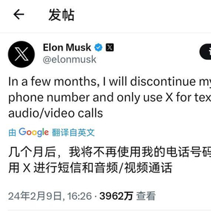 所以,马斯克告诉自己的1.7亿个粉丝账号:“在几个月后,我将停止使用我的电话号码,只使用X平台发短信和进行音频/视频通话。”