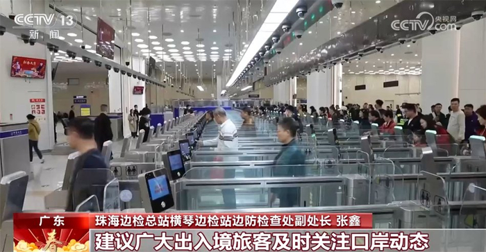 珠海边检总站横琴边检站边防检查处副处长 张鑫:根据预测,从今天(2月12日)一直到大年初七均为客流高峰日,届时琴澳两地通勤人员、内地出境游和返程入境人员客流叠加,单日客流有望突破历史新高,建议广大出入境旅客及时关注口岸动态,预留充足时间,尽量错峰出行,避免耽误行程。
