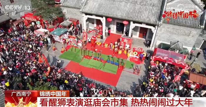 广西南宁:看醒狮表演逛庙会市集 热热闹闹过大年