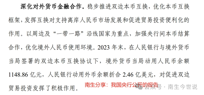 2023年,其他国家、地区启用的“人民币互换金额1148.86 亿元”,那我国启用多少呢?
