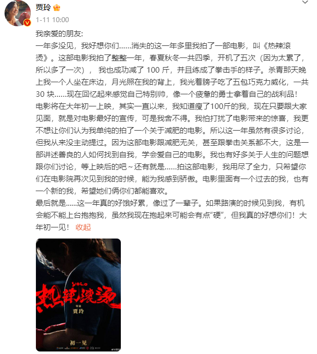 时隔一年多,减重100斤的贾玲