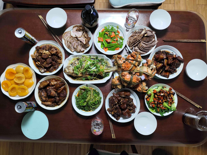 尝的是美食,话的是家常,和家人一起围坐饭桌前吃上一顿丰盛的团圆饭,一家人团圆喜乐就是过春节最好的方式。