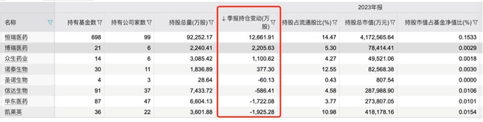 减持较多的还有华东医药,公募减仓1722万股,减仓最多的是招商基金,合计减持了1117万股,此外,富国和博时旗下基金也分别减少了607万股和372万股。