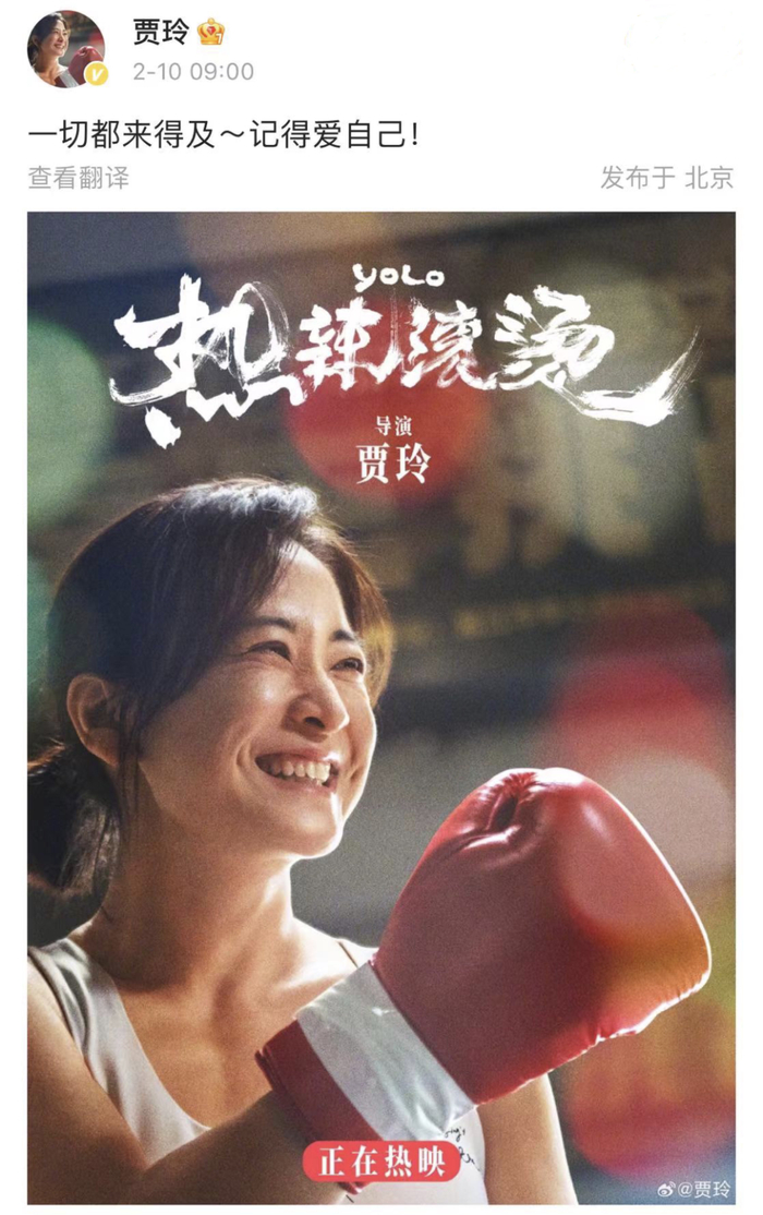 当天,贾玲发布了电影最新人物海报并配文:“一切都来得及~记得爱自己!”