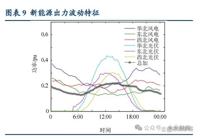 风光并网快速提升,时空供需错配带来消纳挑战。从日内电力平衡角度来看,光伏出力 高峰时段在中午,夜间没有出力,因此在早晚用电高峰期间,光伏发电支撑能力有限; 而风电主要在傍晚及夜间出力,白天出力相对较少。从月度电力平衡角度来看,华北、 东北及西北等地用电高峰为夏冬两季,而春夏为风电出力高峰,夏秋为光伏出力高峰, 风光出力的季节性虽在一定程度上有所互补,但月度电量分布和负荷需求仍存在不匹配 的问题。