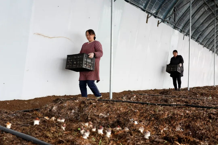 “我家就住在附近,这活儿也不累,最主要的是还可以照顾到家人。”工人张现改说,来赤松茸基地上班两全其美,一个月下来能赚3000元左右,足够补贴家用。