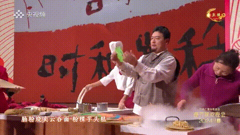 今年春晚里,有东西南北的歌,也有五湖四海的面。在龙年春晚的舞台上,演的是以吃面为代表的中国年俗,让人念念不忘的是除夕万家灯火之夜,来自家乡的那一口热气腾腾的好滋味。