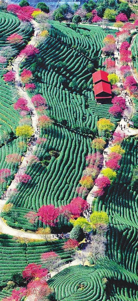 ⑦2月13日,福建省漳平市永福镇后孟村,游客在樱花茶园欣赏美景。朱海鹏摄(中经视觉)