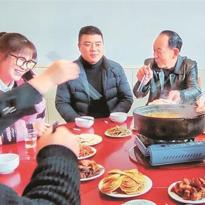“听说这家的豆干火锅好吃,所以特地来品尝。”当天,饭庄接待了40人的旅游团,游客徐女士对六龙豆干赞不绝口,吃得十分畅快,“锅底辣而不燥、油而不腻,豆干鲜嫩香弹,安逸得很!”