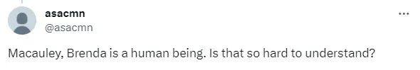 麦考利,布伦达是一个活生生的人。有那么难理解吗?