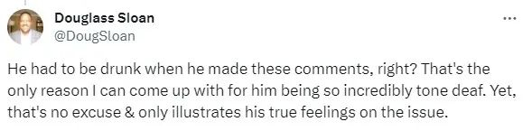 他一定是喝醉了才发表这些言论的吧?这是我能想到的他如此口无遮拦唯一原因。然而,这不是借口,只是说明了他对这个问题的真实感受。
