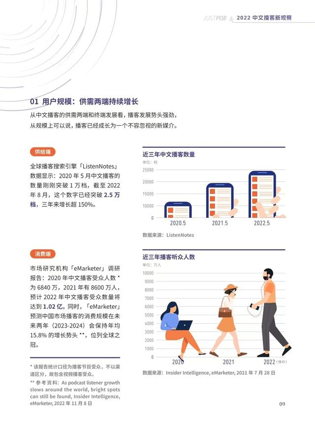 根据JustPod发布的《2022中文播客新观察》,截至2022年8月份,中文播客的数量已突破2.5万,受众数量高达1.02亿