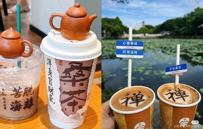 比如,杭州灵隐寺出的好运奶茶和普陀山的禅意咖啡,真是能PK一把: