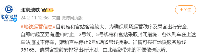 甚至到了中午12点半的时候,雍和宫地铁站宣布了封站: