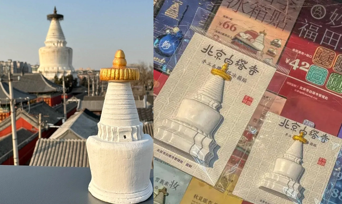 比如北京的白塔寺,就卖起了白塔同款冰箱贴: