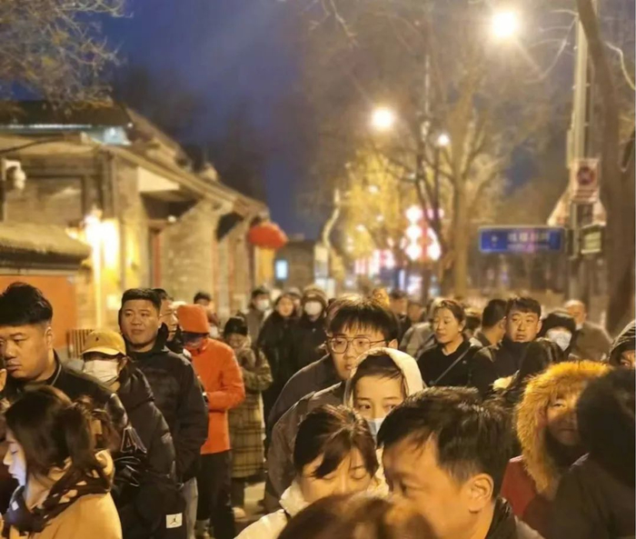 其实,初一那天,雍和宫已经挤爆,开启了限流措施:达到1万人的饱和值,就由人墙隔断,限制进入,直到有人出去,才打开人墙放人进去。