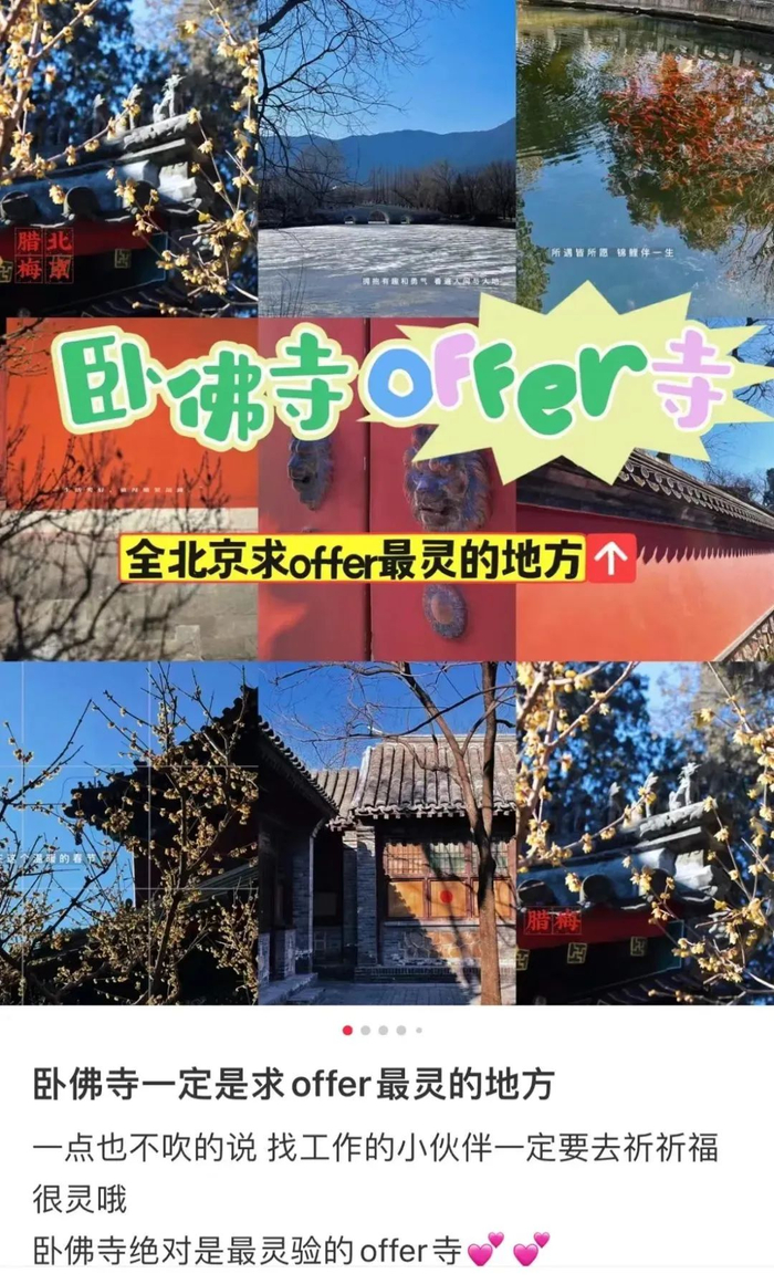 早在2001年,就有很多学生因为这个梗去卧佛寺烧香了,现在又加上了着急找工作拿offer的毕业生,人数站上了一个新台阶。
