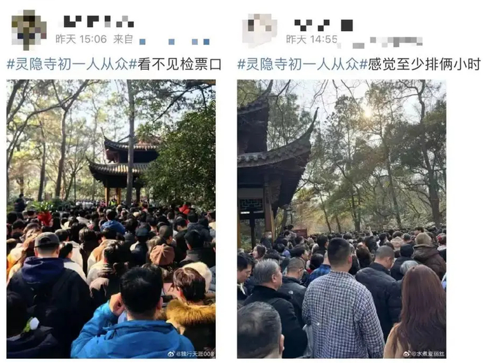 还有个爆火的庙是杭州灵隐寺,初一挤得寸步难行: