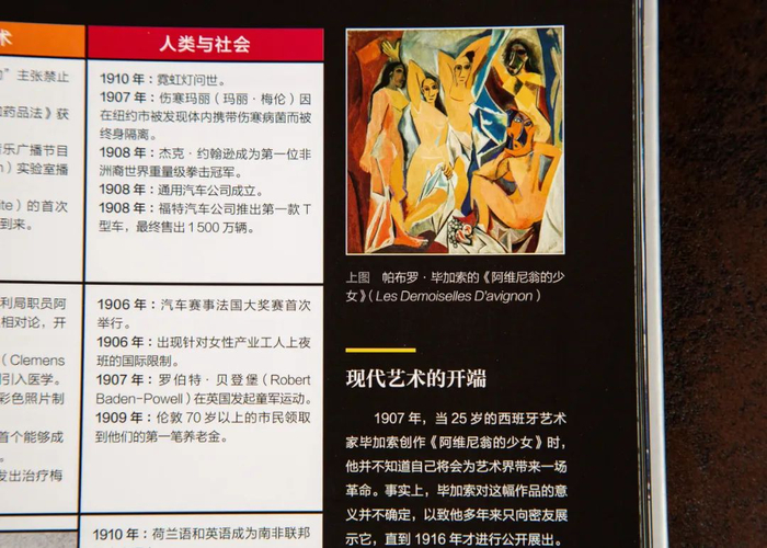 在20世纪初的现代艺术开端中,看到毕加索的著名画作——《阿维尼翁的少女》。