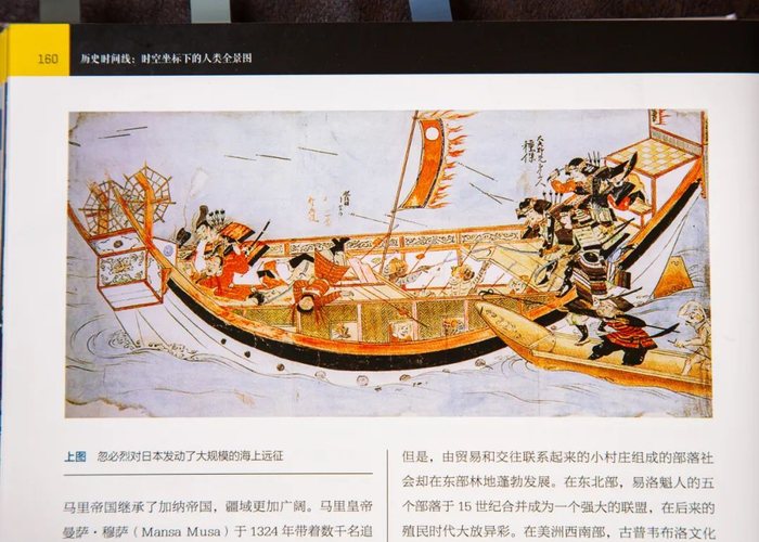 在13世纪晚期的政治与权力中,看到忽必烈对日本发起了两次大规模的海上远征。(两次都遇到台风袭击,被日本武士击退)