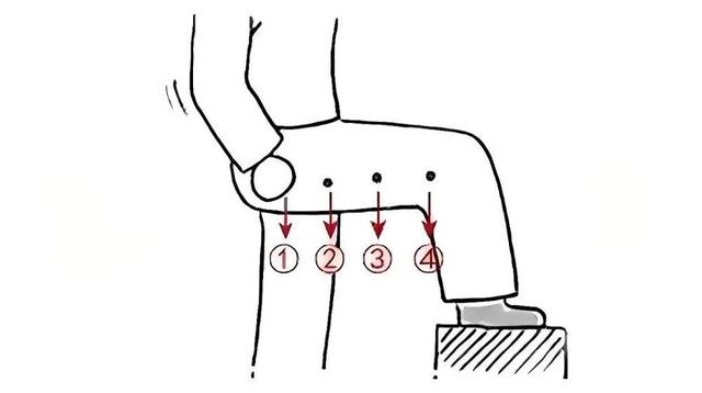 定位:大腿外侧中线,主要取环跳-风市-中渎-膝阳关一线(即臀部、大腿外侧至膝关节),按照图片标注的顺序敲打。