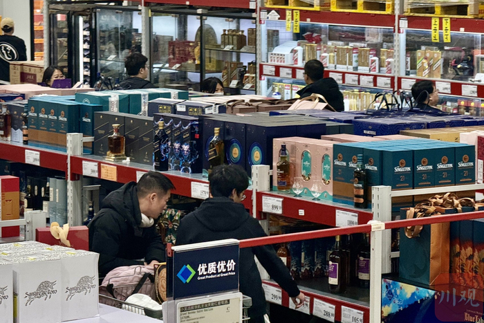 山姆会员商店成都天府和悦广场店内,消费者在买酒。川观新闻记者 赵泽宇 摄