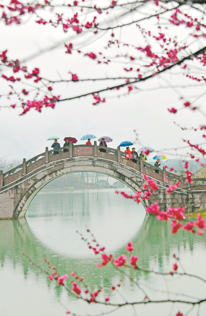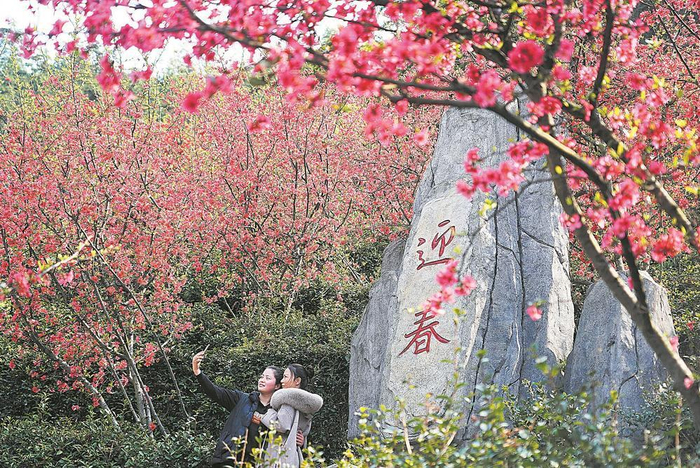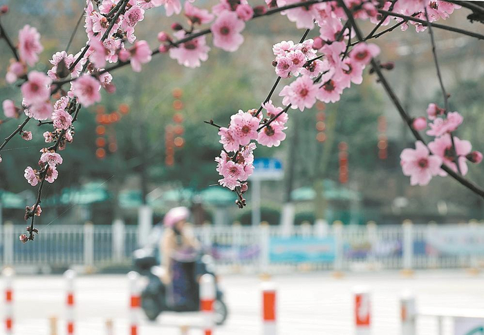 立春前后,红梅成片成片地绽放在城市的每个角落