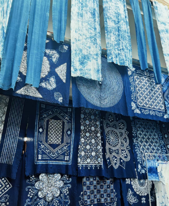 上车后,司机师傅说这边的村民除了田里耕作,还有很多是通过销售手工艺品来赚钱养家,白族扎染技艺是他们最知名的手工艺品,也是被列入第一批国家级非物质文化遗产保护名录的,距今也有千年历史。淡淡的蓝白色相间,制作成裙子、外衣、玩偶、布袋等各种产品,在大理的各种古城当中随处可见,这种浪漫来自小城之中这蓝白色的纯粹、来自白族人民对扎染技术的保存至今。