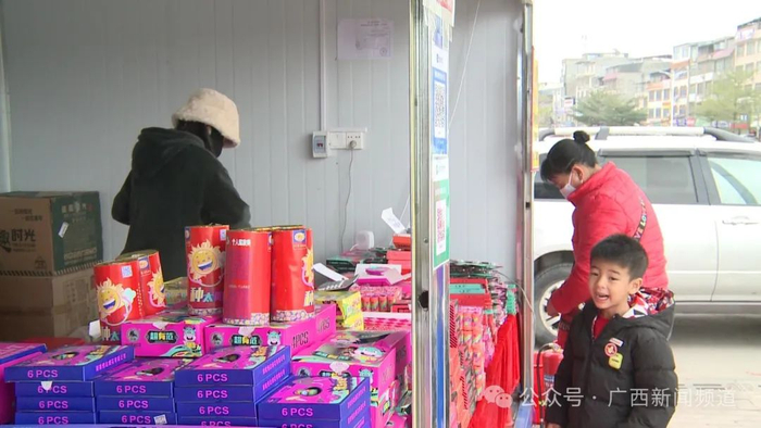 在南宁市西乡塘区邕隆路上,有多家烟花爆竹指定销售点。记者看到不时有市民前来选购烟花爆竹。
