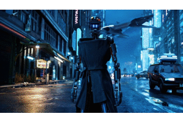 Sora生成的视频:在“赛博朋克”背景下,一个机器人的生活故事。