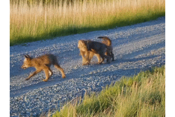Sora生成的视频:五只小狼在一条砾石路上嬉戏追逐,周围长满了草。Sora的缺点是动物或人会凭空出现,特别是在包含许多实体的场景中。