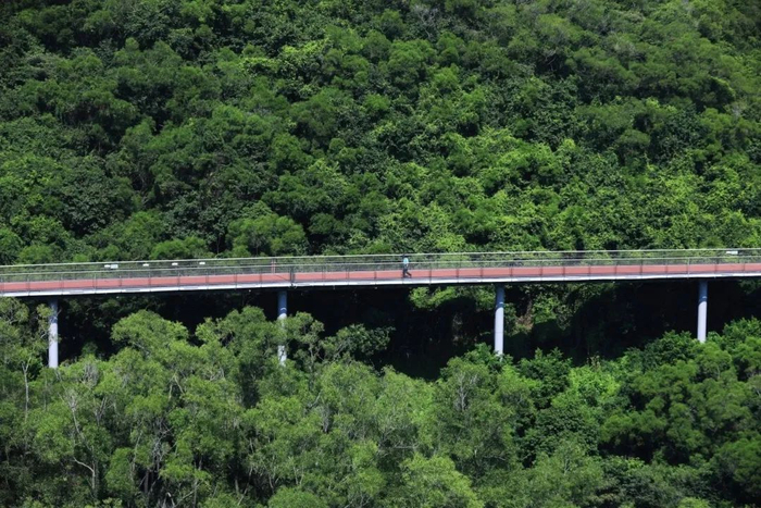 西线步道从横琴公社出发,依涧慢行,饱览山色,沿途可欣赏到软荚红豆、山茶花、酸藤子等野生植物。东线步道则以琴澳城市风光为伴,抵达山巅可俯瞰横琴金融岛,隔海遥望澳门。