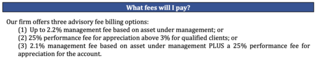 从上图可知,H&H International Investment, LLC有三种收费模式: