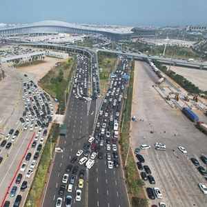 2月16日,新海港离岛旅客激增,部分路段实施交通管制。除特别标注外,文中图片均为受访者提供