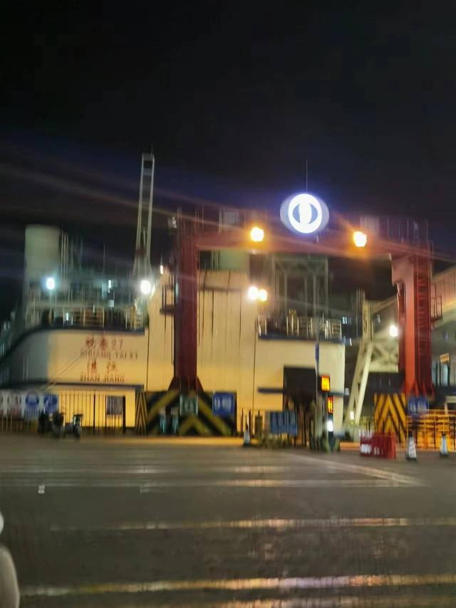 2月16日晚上7点40分,黄一然和朋友一家终于到达港口,看到渡轮。