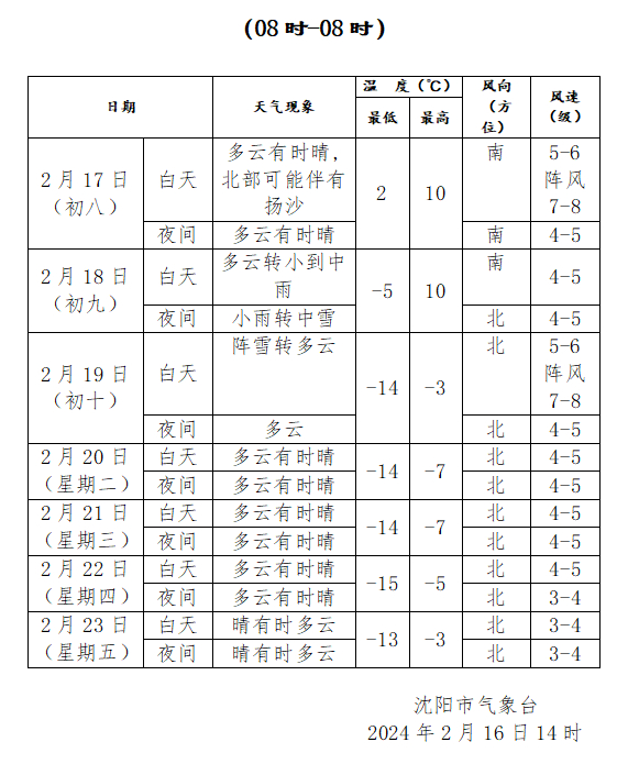 沈阳未来一周天气预报