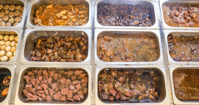 店里凌晨就会准备好食材,牛腩、牛肉丸、鱼蛋、牛肚、煎蛋、猪肉丸、猪红、酸笋鸭...样样都是经典。