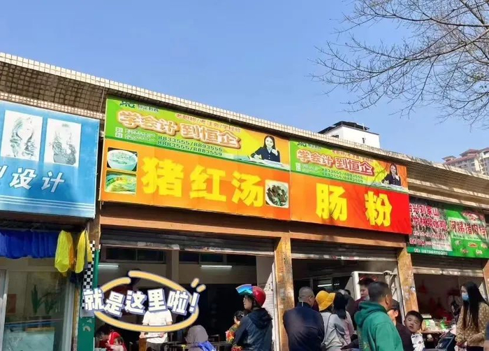 隐藏在群立街居民区的早餐店,店名就叫“猪红汤肠粉”,没有精心设计的招牌和装潢,但那份香气仍然唤醒了一代代的韶关人。