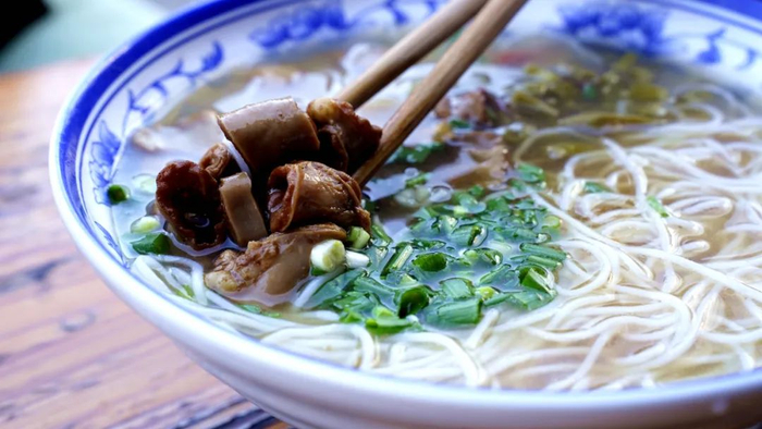来上一碗招牌牛腩或者豆腐肉丸粉面,记得一定要加灵魂辣酸菜,然后大口嗦粉,一整个满足。