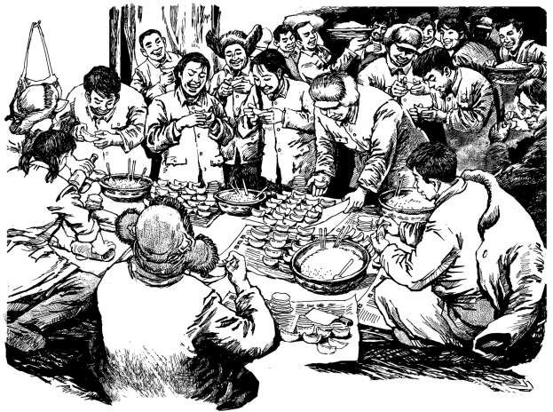 年三十上午,我们二队的司务长秋子担心晚上大家喝高了,开铁牛直奔九十里外的富锦县城,想着为大家采购点儿吃的,哪怕是水果罐头,也能解解酒,可商店竟然什么吃的都没有了。秋子看见商店的角落里堆着半麻袋黑黢黢的东西,走近一摸,是冻酸梨,便包了圆儿。当秋子赶回二队,把这半麻袋冻酸梨往地上一倒,所有人的眼睛都亮了。