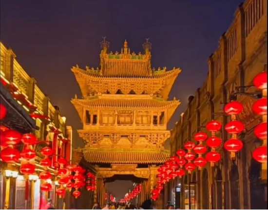 图:平遥中国年灯光秀和《又见平遥》演出