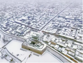 图:秋天和冬天雪后的平遥古城