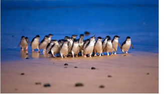 菲利普岛是目前世界上最大、保护最完善的野生企鹅聚居地,栖息着许多身高大约30厘米的小蓝企鹅,故也被称为企鹅岛。小企鹅眼睛畏光,每天天还没亮就早早从巢穴游到大海,晚上才会陆陆续续上岸归巢,圆鼓鼓的嘴巴里还含着从海里带来的食物,是为了喂养自己的幼雏。