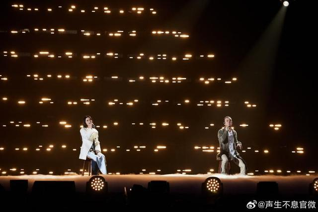 谭维维《鸿雁》一开口就是辽阔草原,她与杨坤合作的《风平浪静》中,充满故事感的歌声似潺潺流水般自然流泻;汪苏泷演唱的《晚安》将一段关系里“差一点”的遗憾与暧昧迷离悉数道来,歌曲结尾,在台下作为“第一观众”的宋亚轩跑上舞台与汪苏泷合唱最后一句,共同完成了这首歌的演绎,为这个舞台画上了完整的句点。