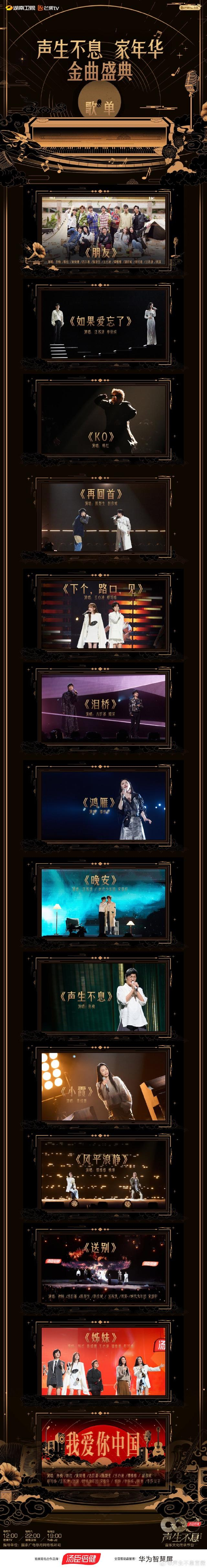 好歌不绝于耳,金曲生生不息。 《声生不息·家年华》今日(17日)收官,最后一期金曲盛典今日在芒果TV12:00、湖南卫视22:00播出。