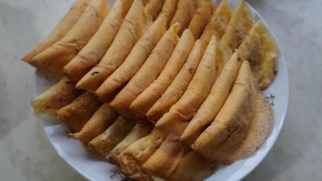 “锅子要烧的烫,蛋皮倒进去很容易挂住,油不能倒的多,不然就要变成炒鸡蛋了,手要翻的快蛋皮才能合的上。”做了几十年蛋饺的徐阿婆,介绍起了制作过程。记者看到,徐阿婆在大铁勺的表面刷上了薄薄的一层油,火候保持在小火,防止火候过大,蛋饺在制作过程中开裂。在锅子中心倒入一汤勺蛋液,带着巧劲轻轻在中间铺出一张圆形蛋皮,待凝固后,放置三分之一的适量肉馅,用筷子揭起一边的蛋皮,对折轻搭在另一边上,再用筷子轻压合拢的蛋皮,翻面定型几秒钟后蛋饺就制作完成了。