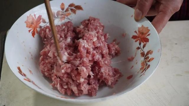 蛋饺好不好吃,馅料是关键的一部分,“肉要选肥瘦相间的五花肉,制作出来的蛋饺更好吃。喜欢爽脆口感的还可以加一点马蹄碎”。俞阿姨一边搅拌着馅料一边向记者介绍到,自家制作并不讲究刀工,主要是选材比较关键,要选择新鲜的猪肉和和鸡蛋保证口感与营养。新鲜的猪肉剁碎变成肉泥后,俞阿姨依次加入了盐、料酒、生抽、蚝油进行调味,用筷子朝一个方向将其搅拌均匀,期间不断分次少量加入葱姜水进行去腥,从一个方向搅拌至上劲,馅就调好了。