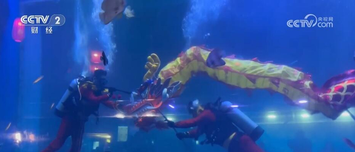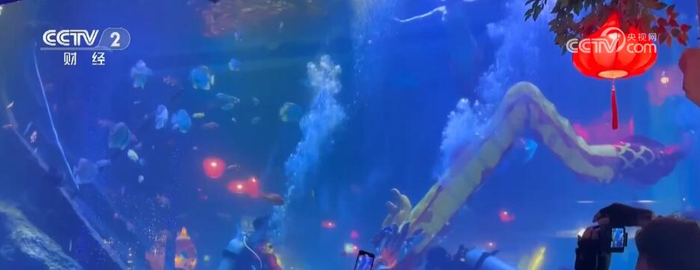 春节假期,不少人来到动物园里感受人与自然和谐共生的趣味。在鄂尔多斯野生动物园的熊猫馆里,红彤彤的福字、喜庆的窗花都让熊猫馆充满过年的气氛。园区也为前来过节的游客们上新了不少项目,“水下舞龙舞狮”就是其中之一。潜水员身背氧气瓶,舞动着6米长的金色巨龙翻腾跳跃,不时地与醒狮互动,耳目一新的表演吸引游客纷纷拿出手机拍照留念。