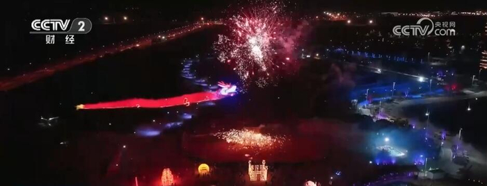 在安徽肥西祥源花世界景区,春节民俗活动从大年初一延续到正月十六。百米长龙灯穿梭在夜幕之下,徽州鱼灯活灵活现,瀑布花火火光四射。